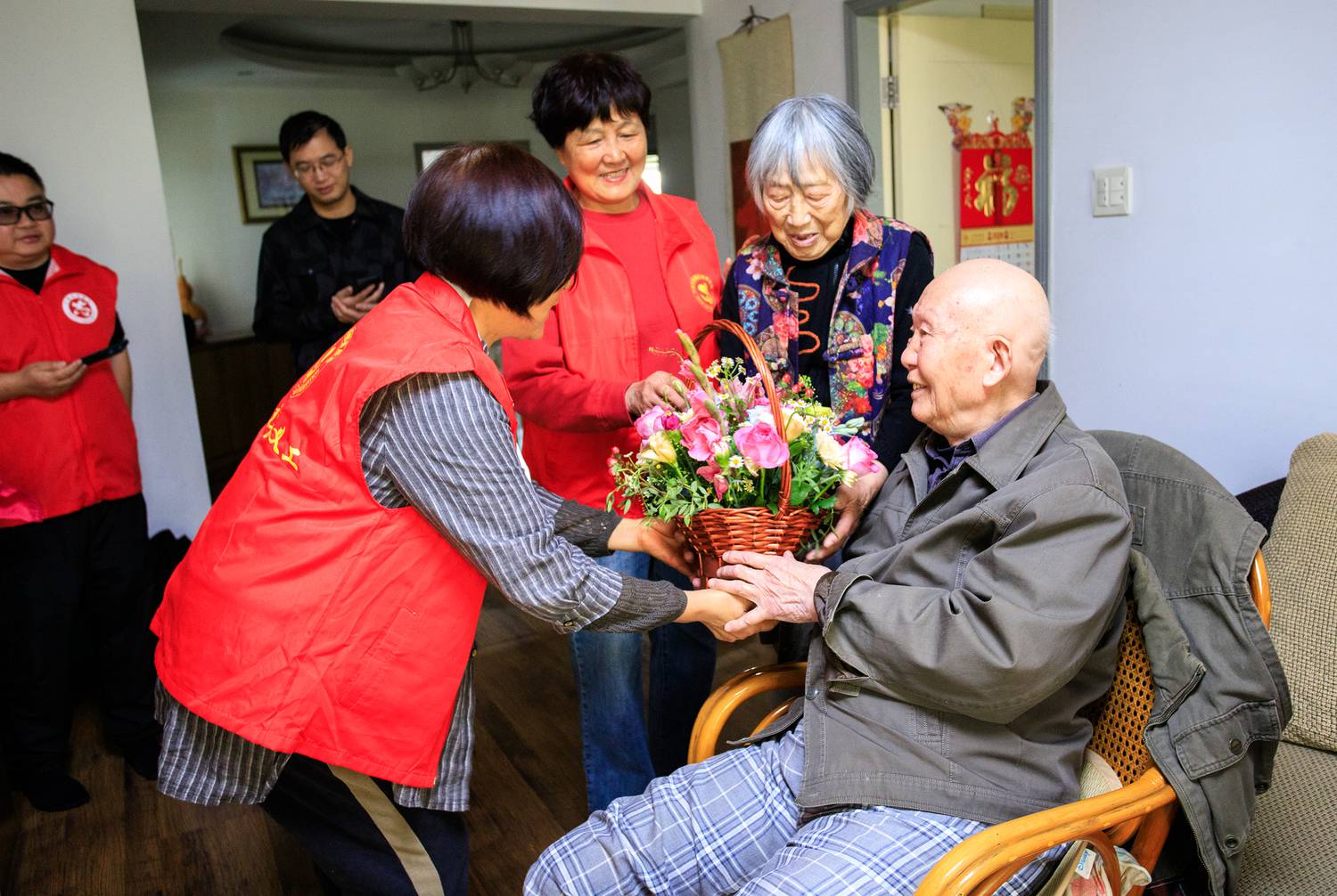 活动现场,与会领导和社区慈善义工还为到场的高龄老人献上鲜花,成为现场最动人的画面。活动不仅聚焦现场服务,更兼顾特殊群体需求,义工们还上门为行动不便的高龄老人提供修脚服务,让老人足不出户也能享受到节日关怀。