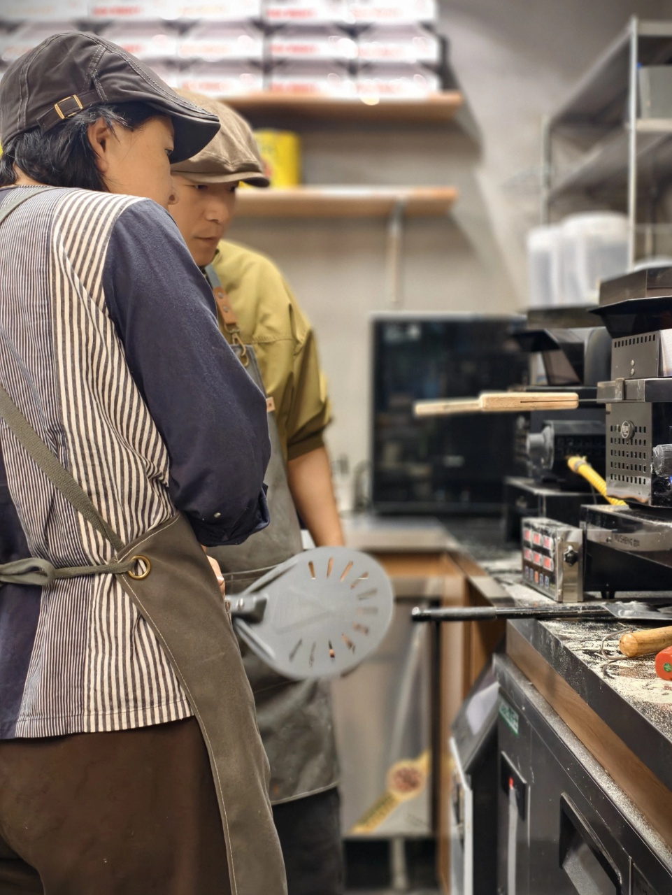 这家位于海曙老街区的披萨店店铺主理人名为杨俊鹏,作为生于1989年的“准九零后”,他的创业之路颇具些“跨界”色彩。生在河南,长在宁波,上学时学的又是电子信息工程,这位十足的“理工男”卖过海鲜,也搞过研学,在接触披萨之前,他的经历和餐饮业无半点关联。其第一次和披萨接触主要是为了满足家人的一口馋:因为妻子女儿爱吃披萨,他便从零开始自学自制,没成想到竟“无心插柳柳成荫”,从在小区周边摆摊起步,凭借其扎实的制作技艺和引人垂涎的美味披萨,最终在文昌街扎根,也拥有了自己的店铺,在街坊邻里中逐渐积攒起稳定的影响力。